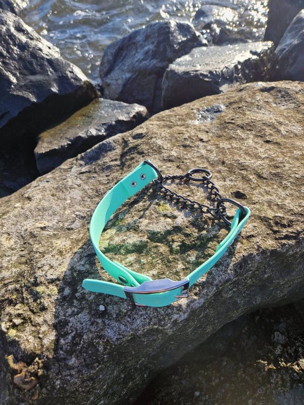 Deze halve sliphalsband van biothane is gemaakt met een RVS ketting in het midden. Deze halsband is geschikt voor het trainen met uw hond, maar ook op reguliere uitlaatmomenten kunt u deze halsband gebruiken.